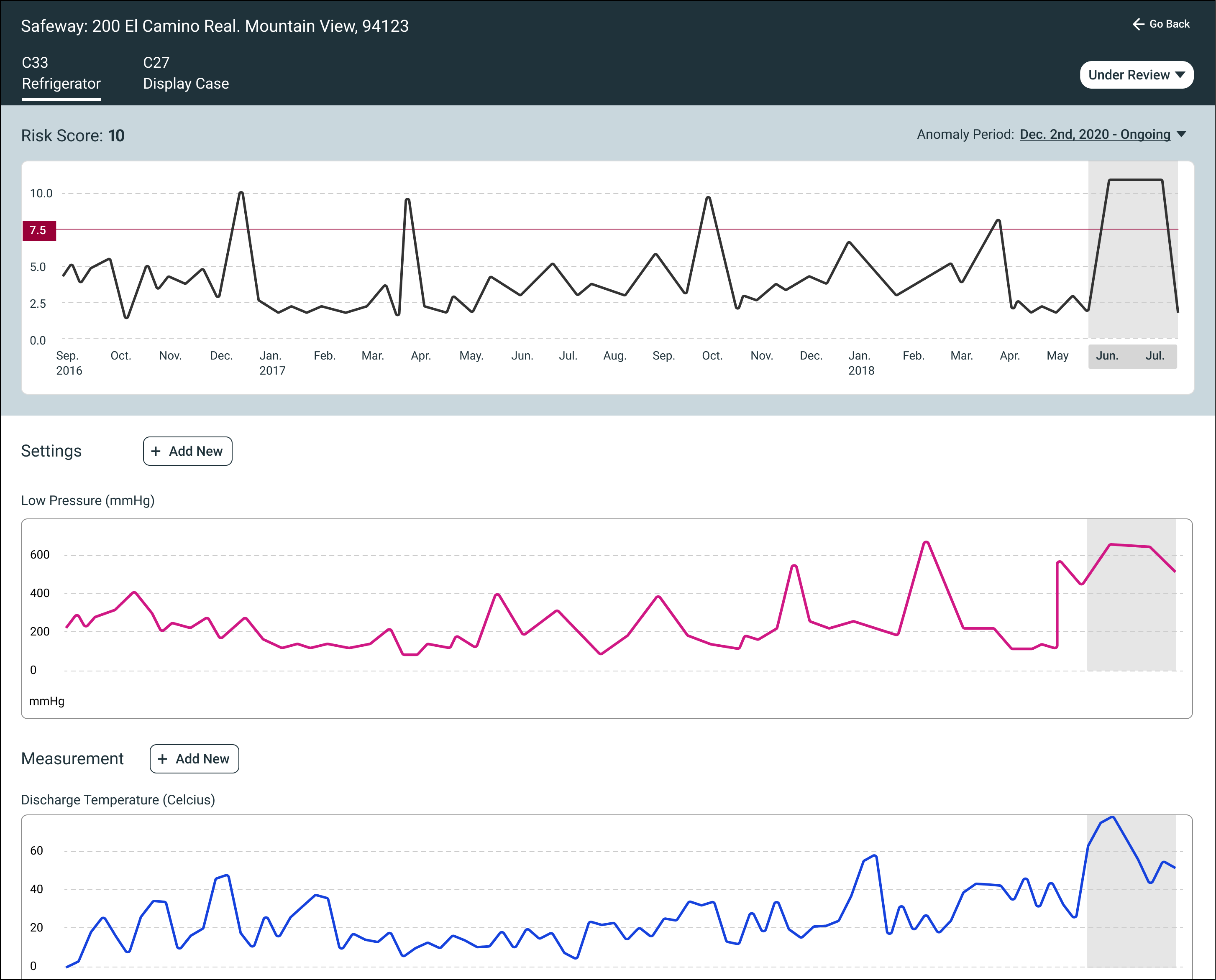 Before this solution, maintenance engineers relied on customer complaints and repeated site visits to diagnose issues with refrigeration units. This reactive approach led to costly equipment replacements and poor customer experience.I designed the initial experience to help maintenance engineers teach the AI what anomalies may look like. By enabling engineers to analyze equipment behavior and label anomalies, we accelerated the model’s learning while surfacing early warning signs of failure.